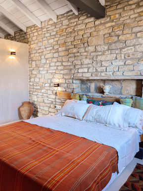 The villa offers endless views of the Aegean and the uniqueness of the Aliki landscape. The villa consists of a spacious bedroom, an airy and bright living-kitchen area, a large terrace with a private jacuzzi, and free parking. Built with stone, the villa’s decoration reflects traditional island elements with minimalistic lines.